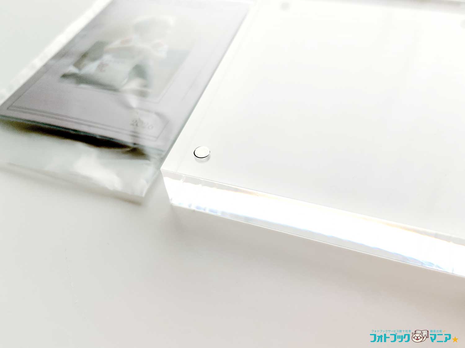 アクリル板は四隅に磁石が内蔵されていて、磁石をくっつけることでカレンダーカードを挟むことができます。