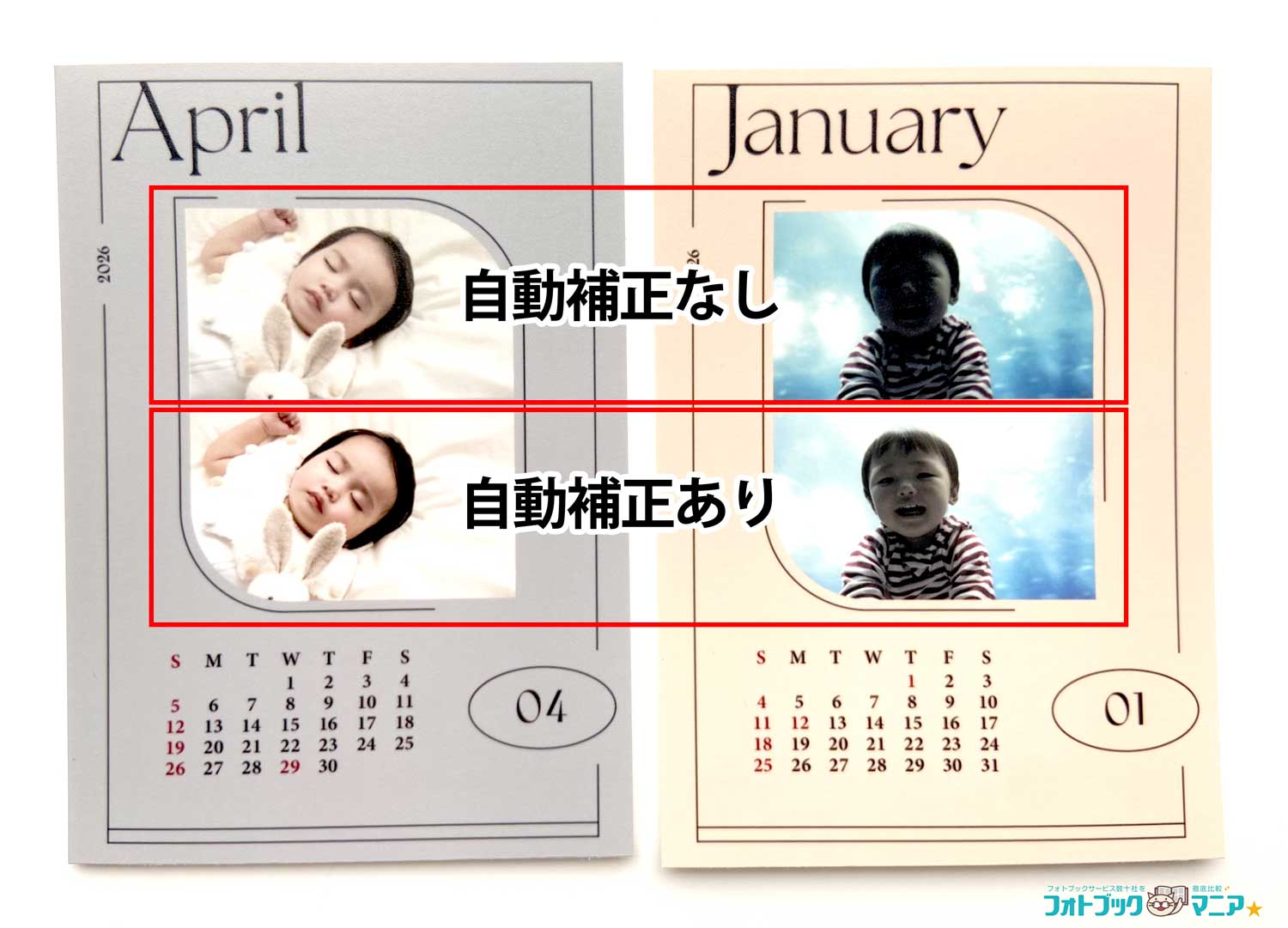 アクリルminiも、壁掛けカレンダーや卓上カレンダーと同じ自動補正機能が使えます。