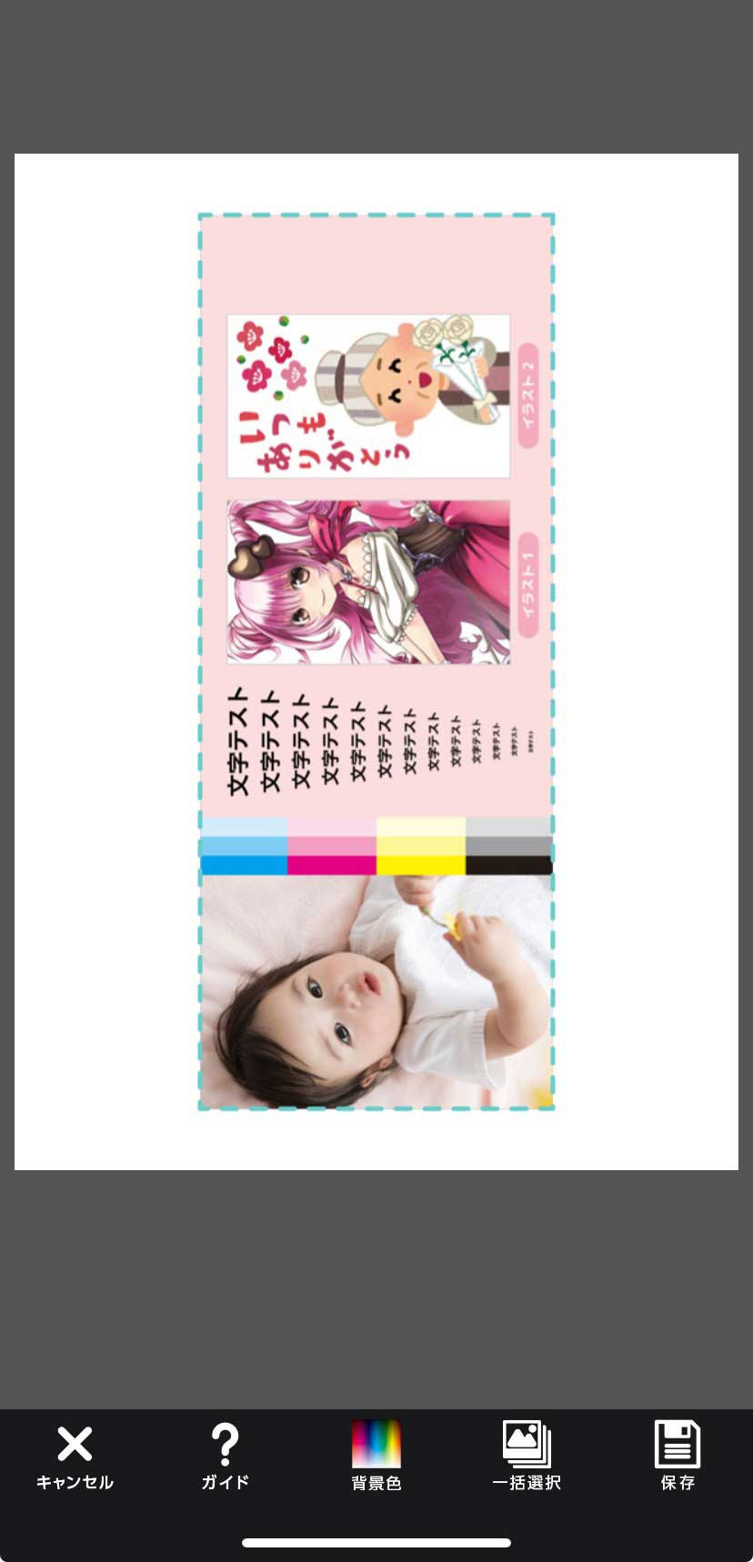 テンプレートは無地だけで、スタンプ等の装飾機能もありませんが、文字は色・フォント・サイズなどを選んで自由な位置にレイアウトすることが可能です。