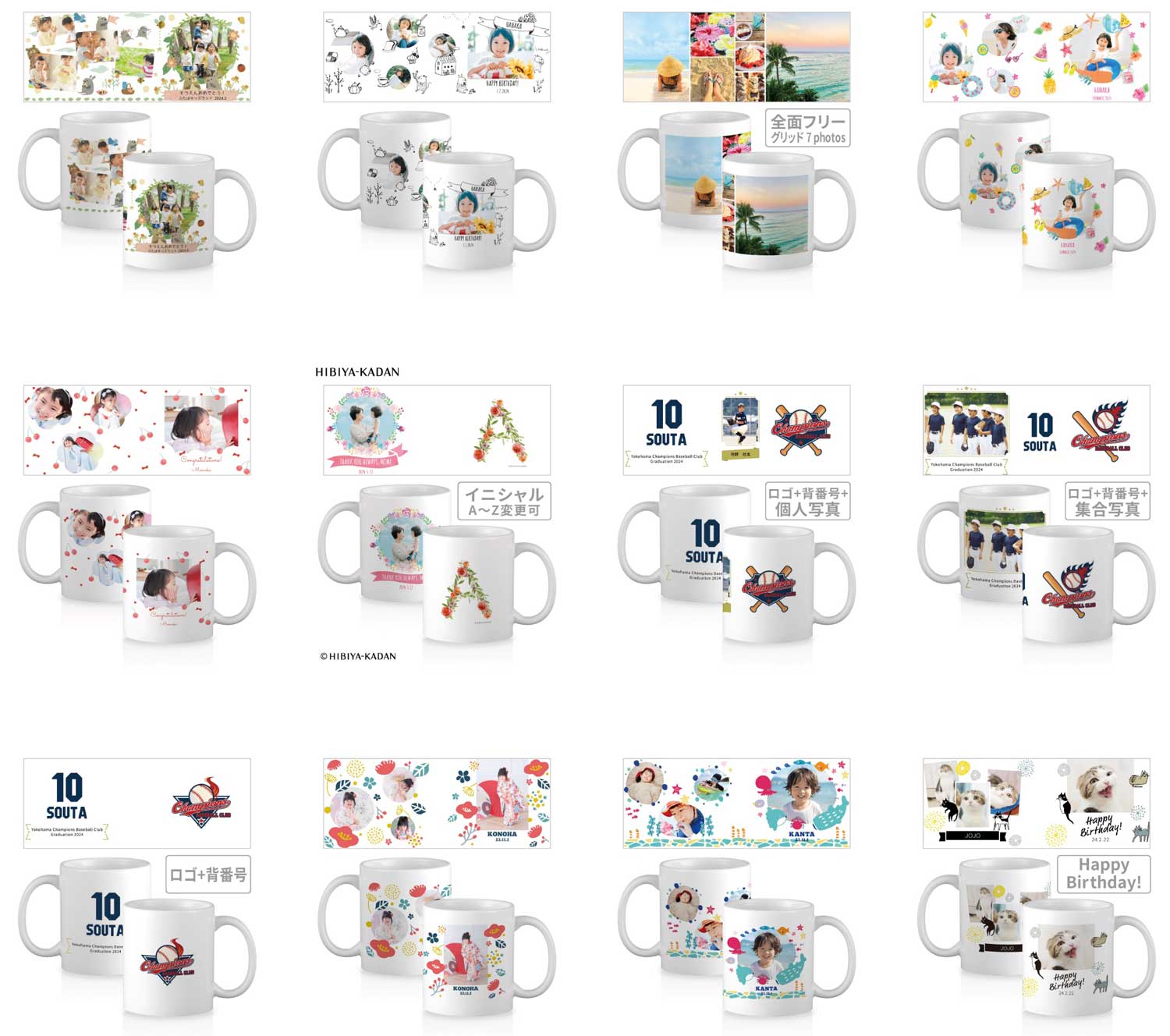 マグカップの他にもガラスのグラスや湯のみ、タンブラーやサーモレスタンブラーなど、カップのバリエーションも豊富なので、季節や好みに合ったオリジナルカップが作成できます。友だち同士でおそろいにしたり、ちょっとしたプレゼントにも使いやすいですね。