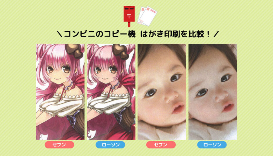 ただし、ローソンのフォトプリンター(昇華型プリンター)によるL判写真・L判イラストのプリントは、レーザープリンターのはがき印刷よりも断然きれいです。