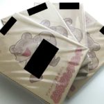 封筒よりも丈夫で折れにくい厚紙の箱の中に、注文したプリントの入った袋が動かないよう貼り付けてあります。