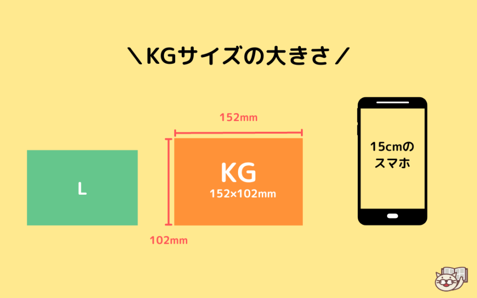 実際のはがきと比較すると、長辺が4mm、短辺が2mm、KGサイズの方が大きいです。