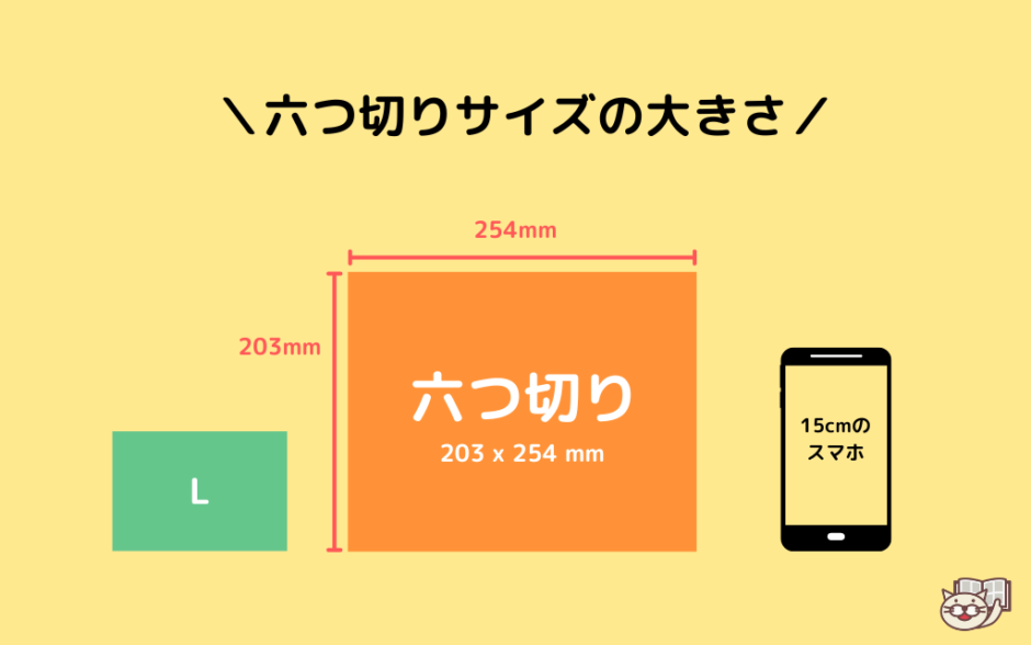 四つ切りと比較すると、六つ切りの方が小さいです。