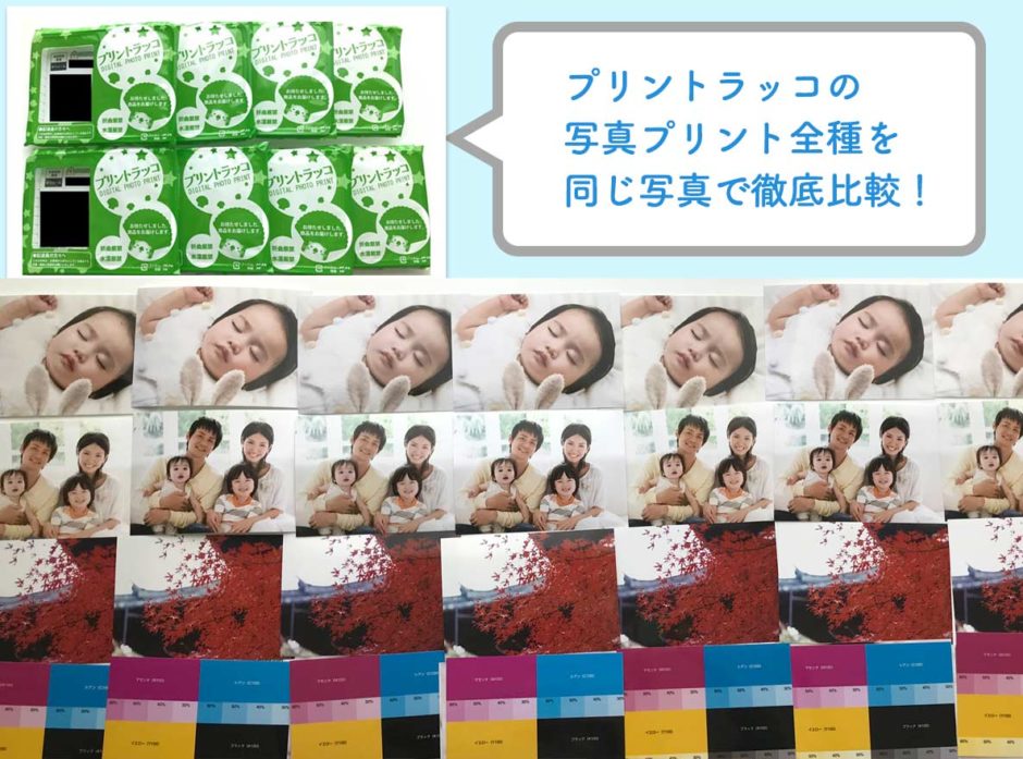 プリントラッコの写真プリント4アイテムを補正なし/色調補正ありで合計7種実際にプリントして比較しました。