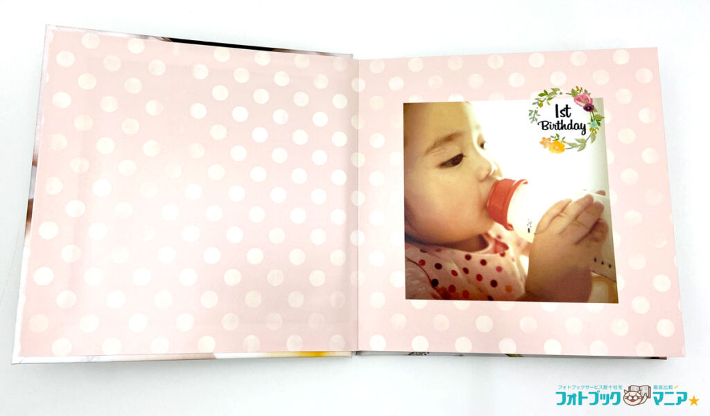 一般的な合紙綴じハードカバーフォトブックの多くは、表紙の裏には何も印刷されていませんが、富士フイルムのハードカバーフォトブックは、表紙の裏にも背景パターンを印刷することができます。