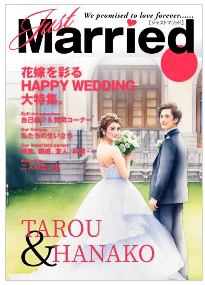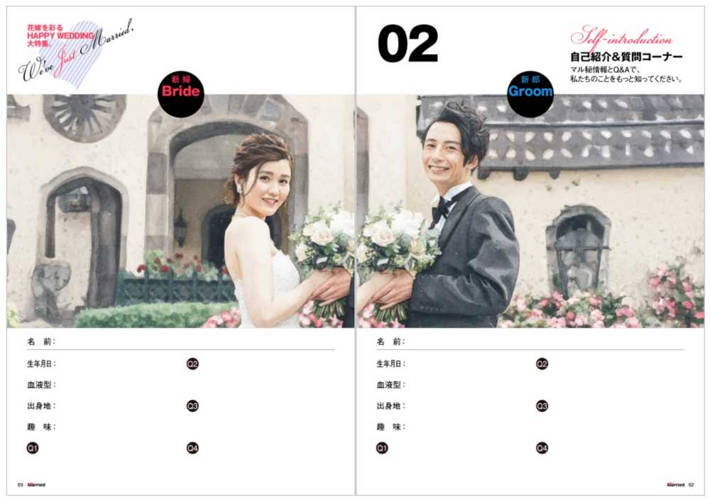 写真素材を使って「Just Married 〜プロフィールブック〜」のレイアウト例を実際に作成してみました。