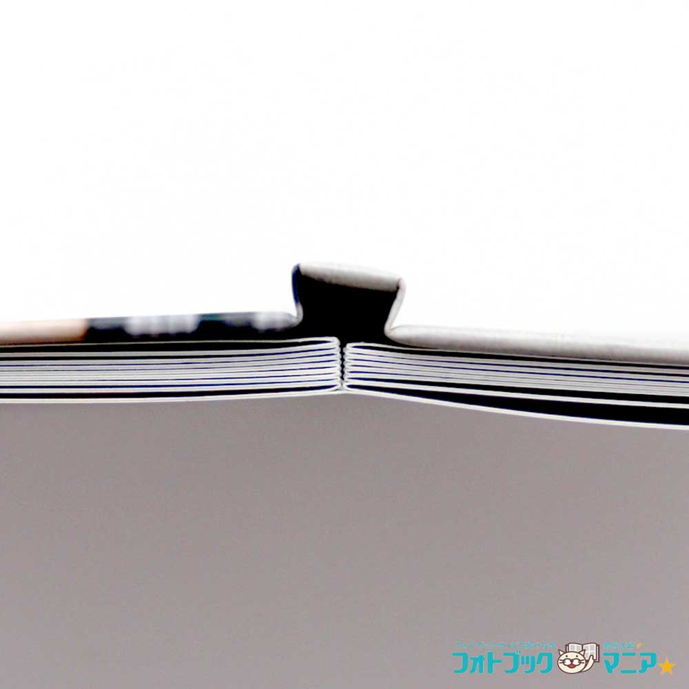 合紙綴じのフォトブックと比較すると薄めになっています。同じ無線綴じなら基本的に、厚めなほどページが開きにくいです。