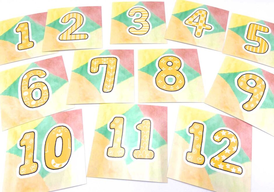 赤ちゃんの0歳〜1歳(12ヶ月)までの写真と一緒に、月齢と同じ数字のマンスリーカードをアルバムに収録します。